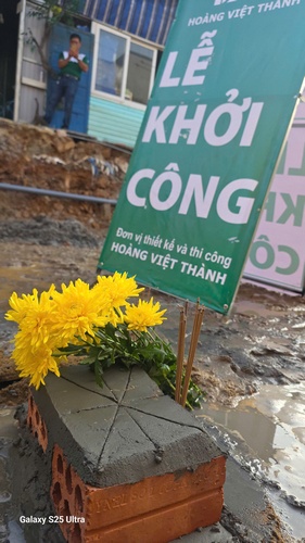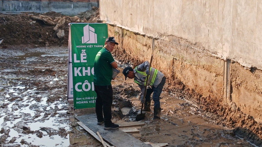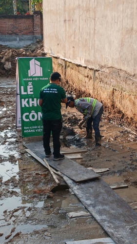 Ngay trong buổi chiều khởi công, hệ thống máy xúc và đội ngũ thợ lành nghề đã có mặt tại hiện trường. Toàn bộ vật tư phục vụ giai đoạn móng đã được Hoàng Việt Thành vận chuyển đến điểm tập kết, sẵn sàng cho công tác đào móng và đổ bê tông lót.