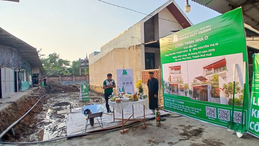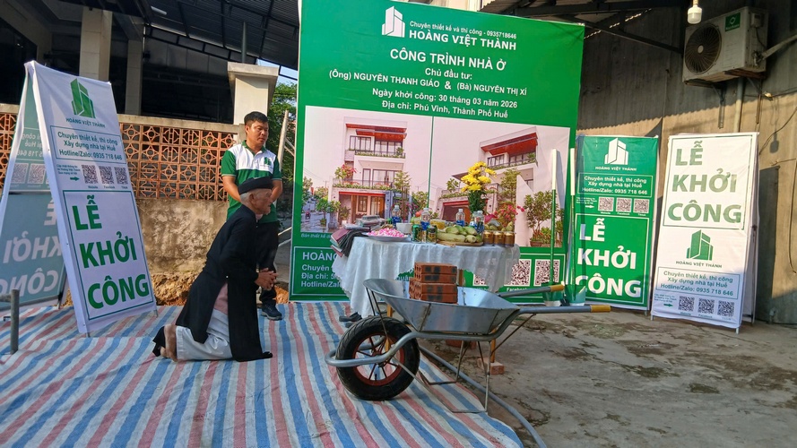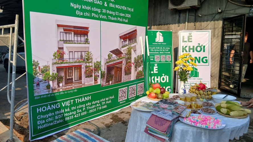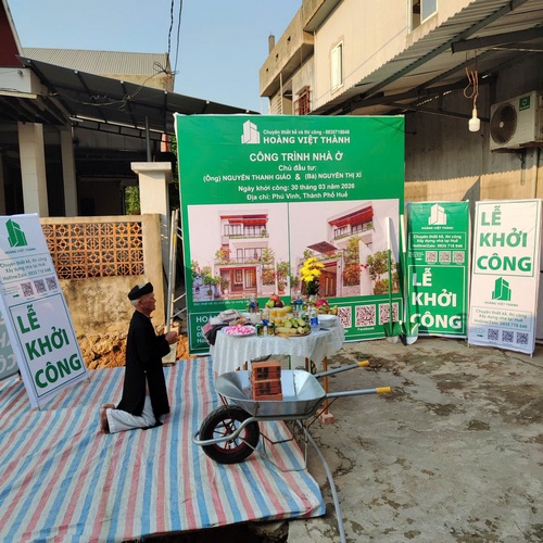 Vào lúc 16h30 chiều ngày 30/3, dưới sự chứng kiến của gia đình và đội ngũ kỹ sư, Hoàng Việt Thành đã chính thức thực hiện nghi thức khởi công động thổ công trình nhà phố 3 tầng cho chủ đầu tư Anh Giáo tại Phú Vinh, TP. Huế.